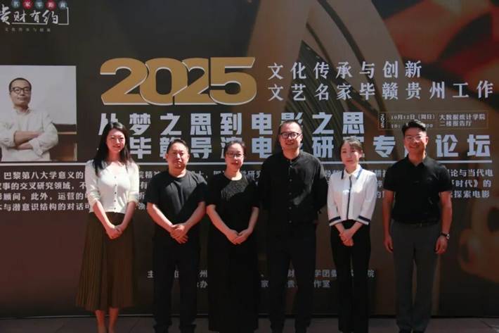 (文胥成钰 鄢星月)10月12日,由贵州省电影家协会、贵州财经大学团委、文学院联合主办,文艺名家毕赣工作室承办的名家零距离——“文艺名家毕赣贵州工作室:从梦之思到电影之思——毕赣导演电影研究专题讲座”在我校修德楼二楼报告厅举办。贵州财经大学文学院中文系主任王立杰主持,贵州省电影家协会负责人叶丹,贵州省电影家协会副主席、文艺名家毕赣贵州工作室成员、贵州大学音乐学院戏剧系讲师胡平,贵州财经大学团委宣传部部长彭译萱,贵州财经大学文学院团委负责人鲁笑俏出席此次活动。讲座邀请毕赣电影顾问、四川大学研究生院心理学产业导师张涛主讲。 张涛博士长期深耕精神分析理论与当代电影叙事的交叉研究领域,不仅在理论层面有深厚造诣,还积极投身电影创作实践,曾担任毕赣导演《破碎太阳之心》《狂野时代》的电影顾问。凭借深邃的理论视角和敏锐的影像感知力,持续探索电影文本与潜意识结构的对话可能,在相关领域具有较高的影响力。 本次讲座,张涛博士以“镜像”“符号”与“真实”为核心线索,从《破碎太阳之心》中多重镜像的自我辨认展开,延伸至《地球最后的夜晚》中时间非线性的故事结构,其结合自身作为电影顾问的实践经历,讲述实现从“观看” 电影到 “潜入” 电影无意识层面的转变,跳出 “电影讲了什么” 的传统思维,引导同学们深入思考 “电影如何结构了我们看与梦的方式”的问题。 互动环节,针对同学们提出的“如何保留电影本身的朦胧诗意”“如何在理论的‘精确解读’和保留作品的‘多义性’之间找到平衡”“如何在现实生活中捕捉‘电影如何结构看与梦’的证据”等问题,张涛博士逐一耐心解答,让同学们收获颇丰。 本次讲座不仅为同学们搭建了与电影领域专家近距离交流的平台,更以理论与实践结合的独特视角,拓宽了大家对电影文本解读的思路,激发了同学们对电影艺术的探索热情与深度思考。据悉,名家零距离系列活动是贵州财经大学和省文联依托贵州省文艺名家资源创新打造的学校文化传承与创新品牌,3年来,持续性地邀请名家们走进贵财校园,以读书会、分享会、交流座谈、书评、展演等形式,搭建名家与师生们面对面交流的平台,在充分发挥文艺名家们的示范引领作用和“传帮带”作用中,真正实现创精品、育人才。